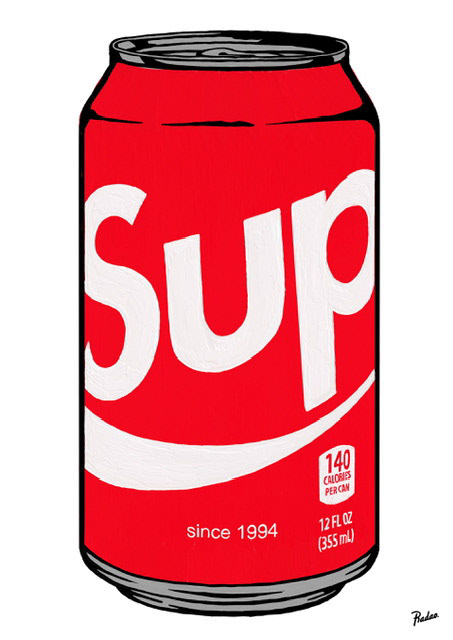 Supreme’s soda cansAcrylic painting on paper, 2017
